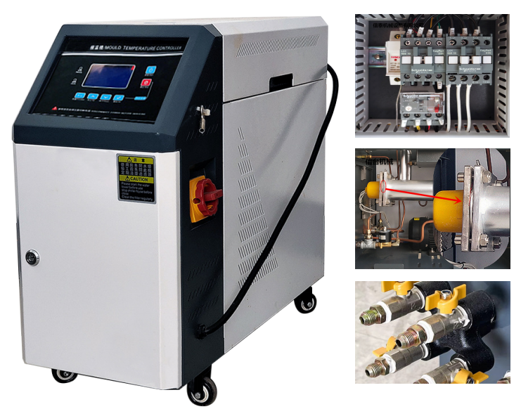 描述:模温机又叫模具温度控制机,模主要分为水式模温机和油式模温机,其中水式模温机温度控制在30-120℃之间,油式模温机温度可控制在30-200℃之间,两者控温精准度均在±0.1℃。广泛应用于塑胶成型、化工反应釜、密炼等行业的模具控温,其主要作用是:提高产成型率,降低生产不良品指数,提高产品外观,抑制产品缺陷。