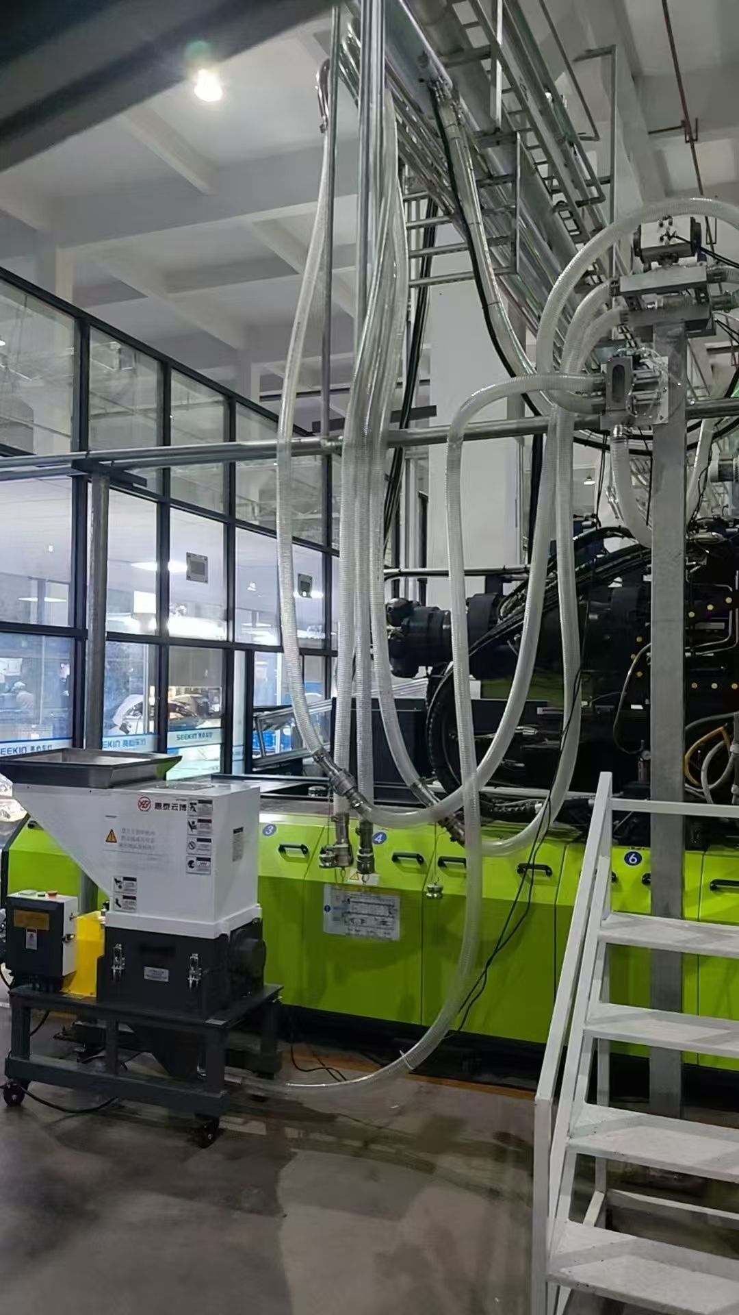 密封储存与回用:干燥后颗粒存入密闭料仓,防潮防污染;按工艺要求与新料精准配比(通常 20%–50%),输送至注塑机完成闭环生产。